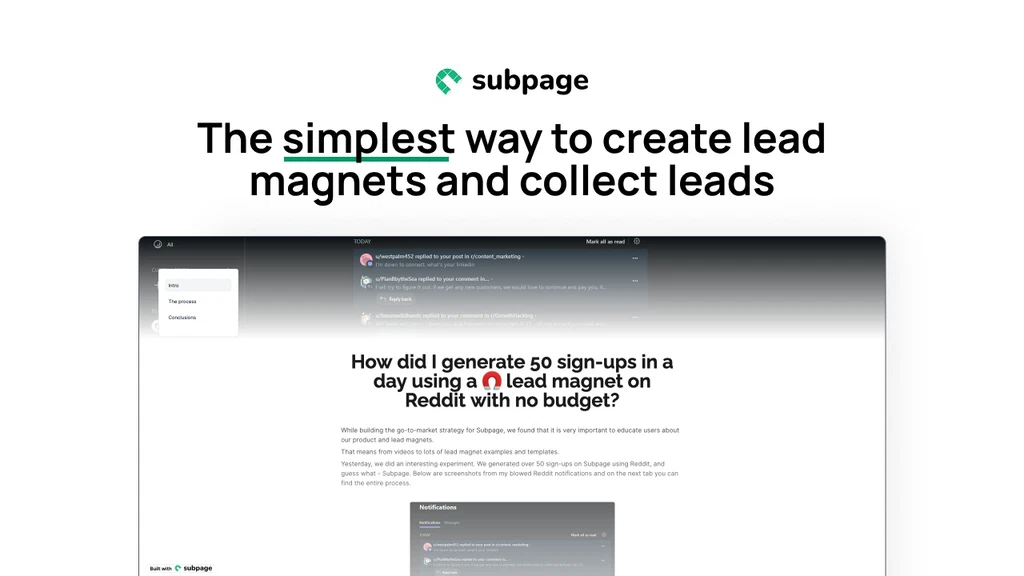 Creating lead magnets is vital for effective marketing. Subpage makes this process easy and efficient.