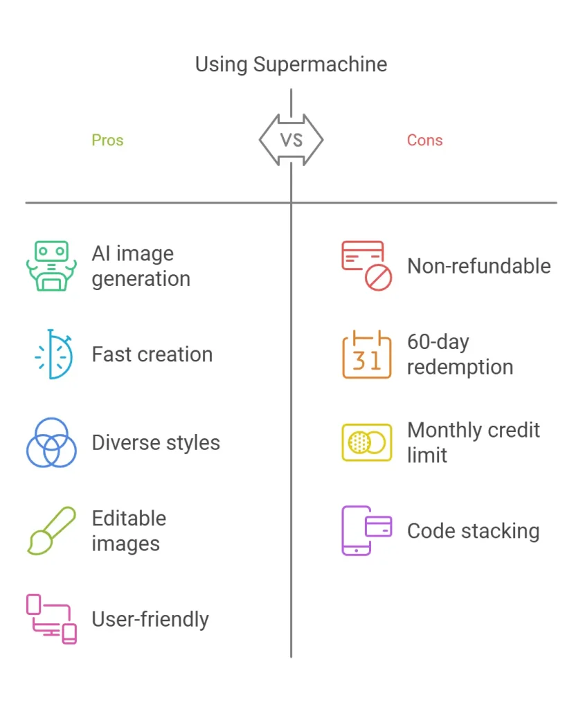 Supermachine offers a powerful solution for generating high-quality images using AI. It promises quick and unique results, but every tool has its strengths and weaknesses. Let’s explore the pros and cons of Supermachine.