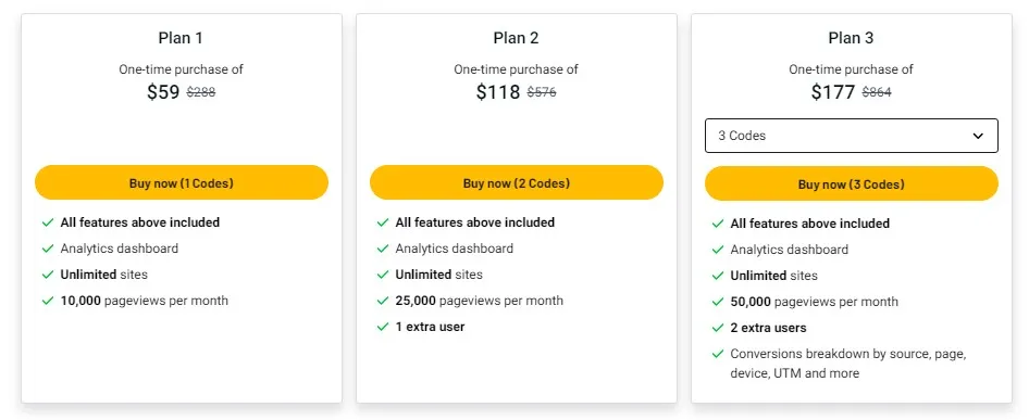 Plan 3 | $177 | $864 | All features + Conversions breakdown | 50,000 | 2 |